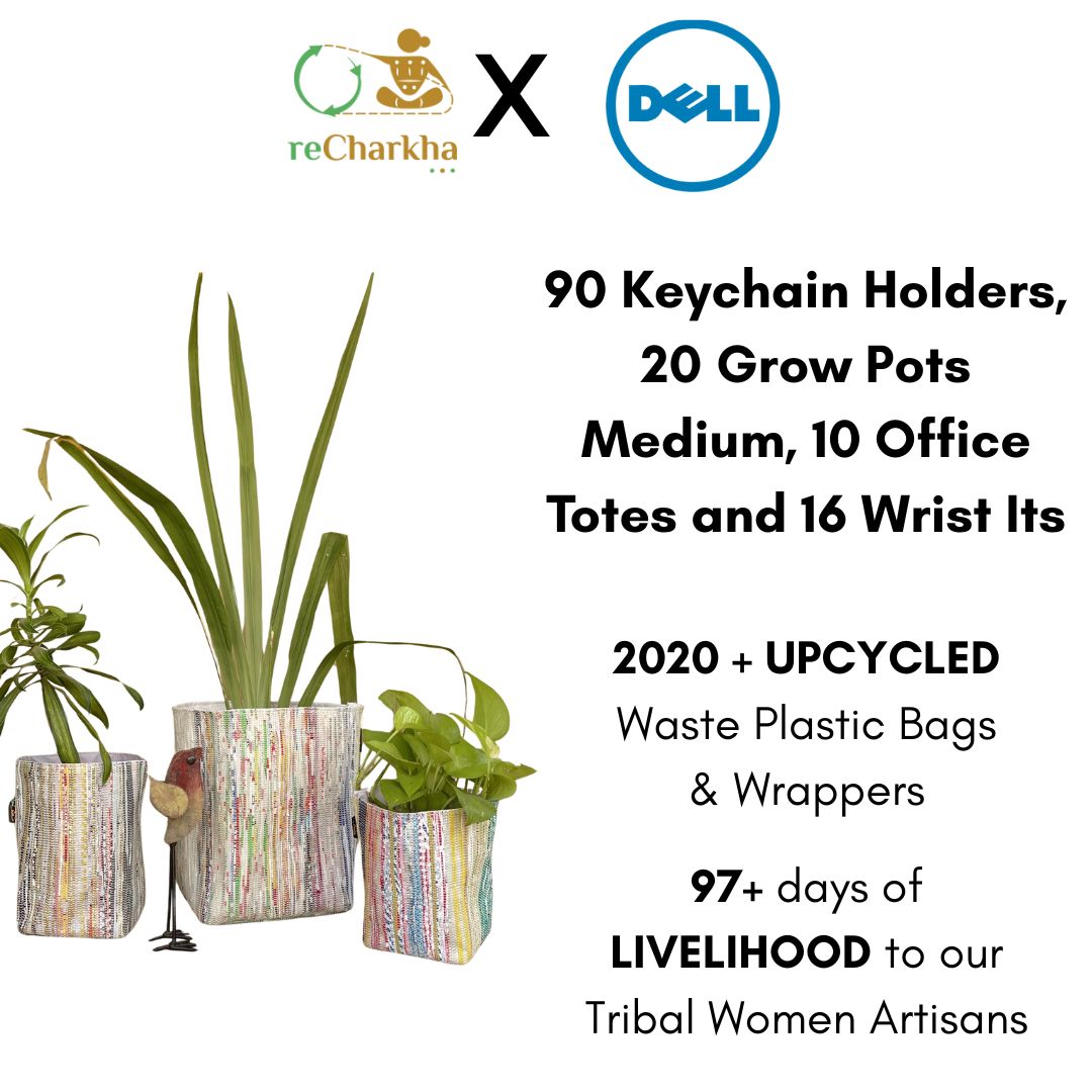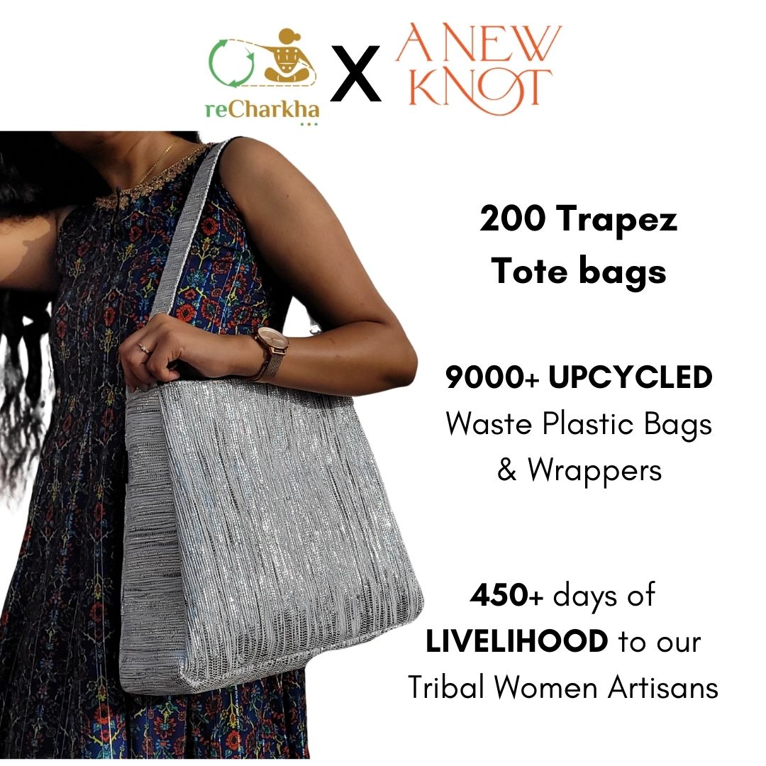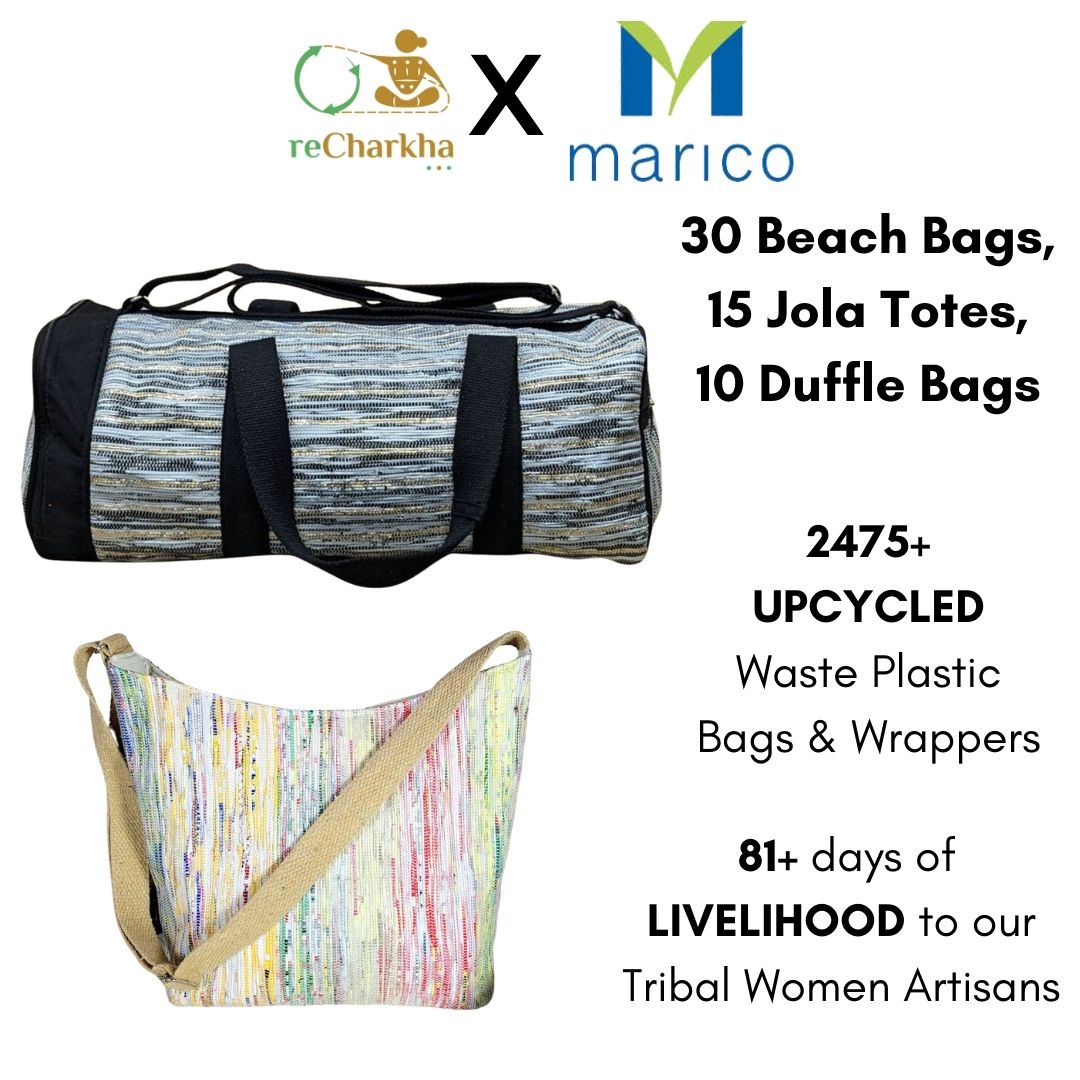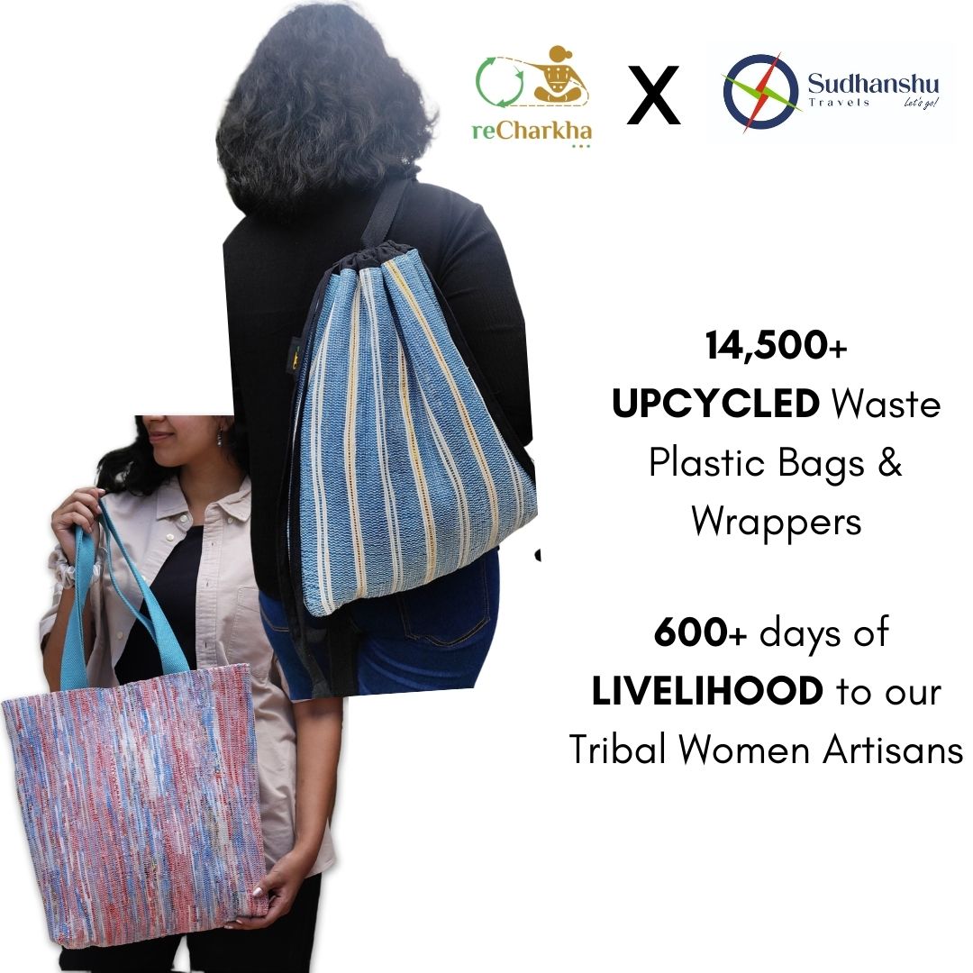 Using traditional charkha and handloom, retaining original colors of plastic waste, using zero electricity and chemicals.