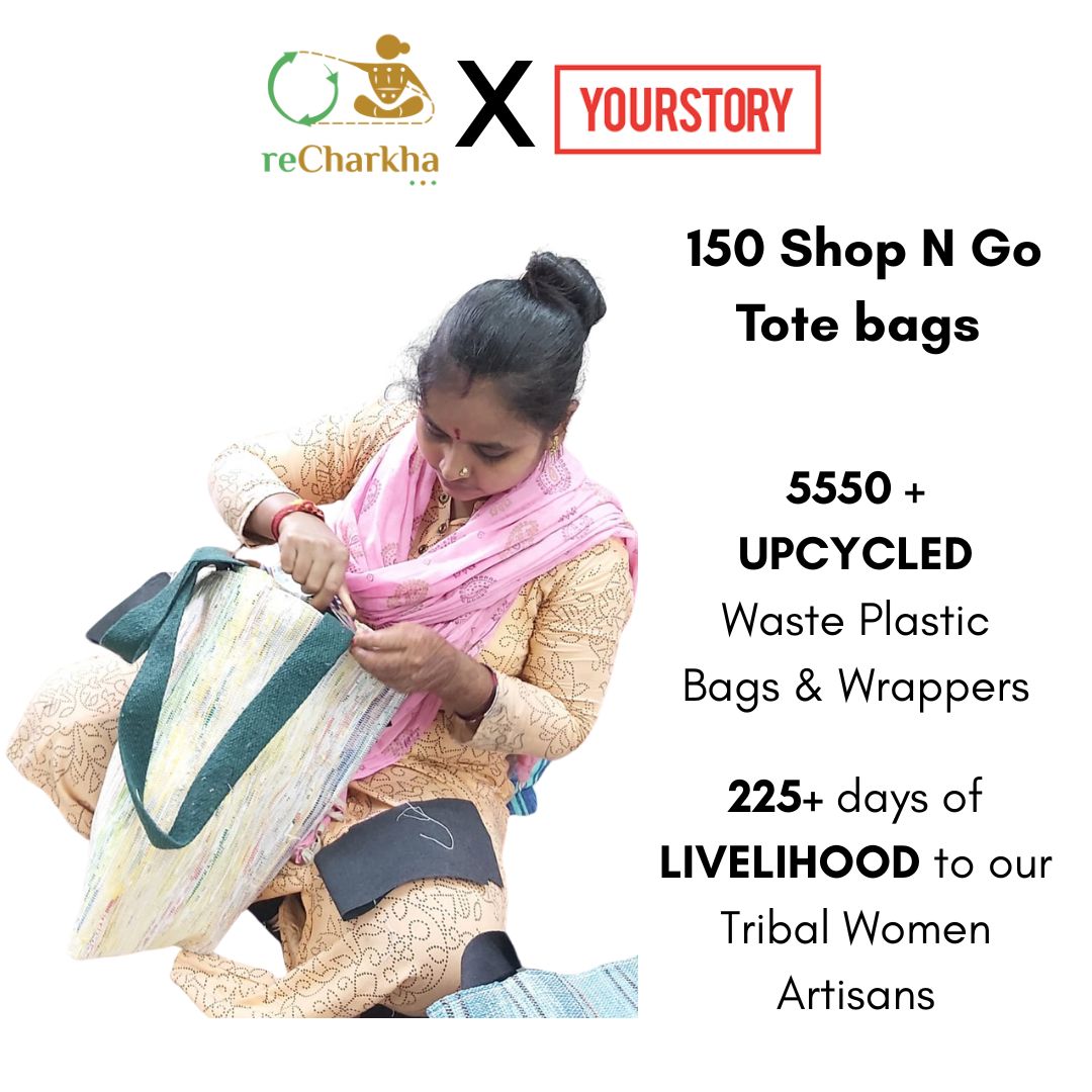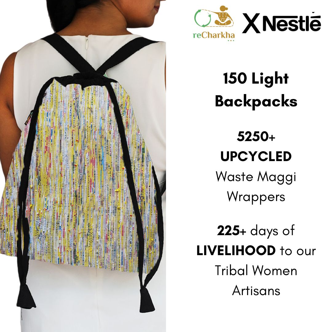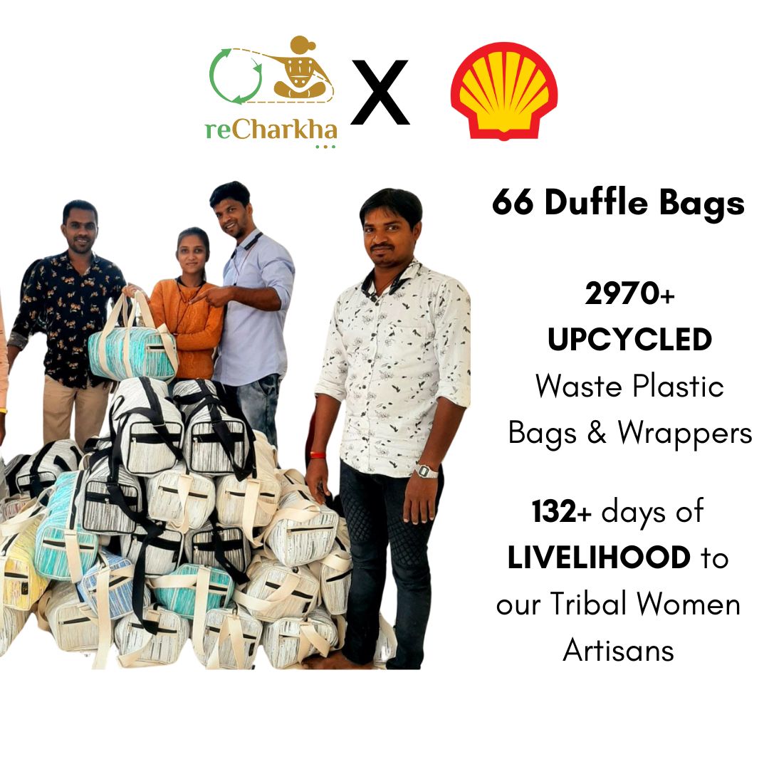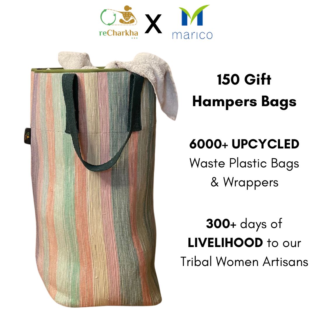 Using traditional charkha and handloom, retaining original colors of plastic waste, using zero electricity and chemicals.
