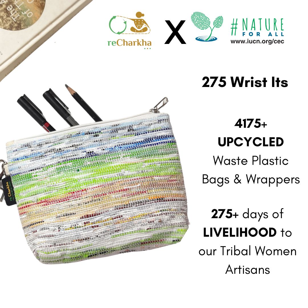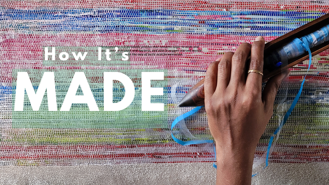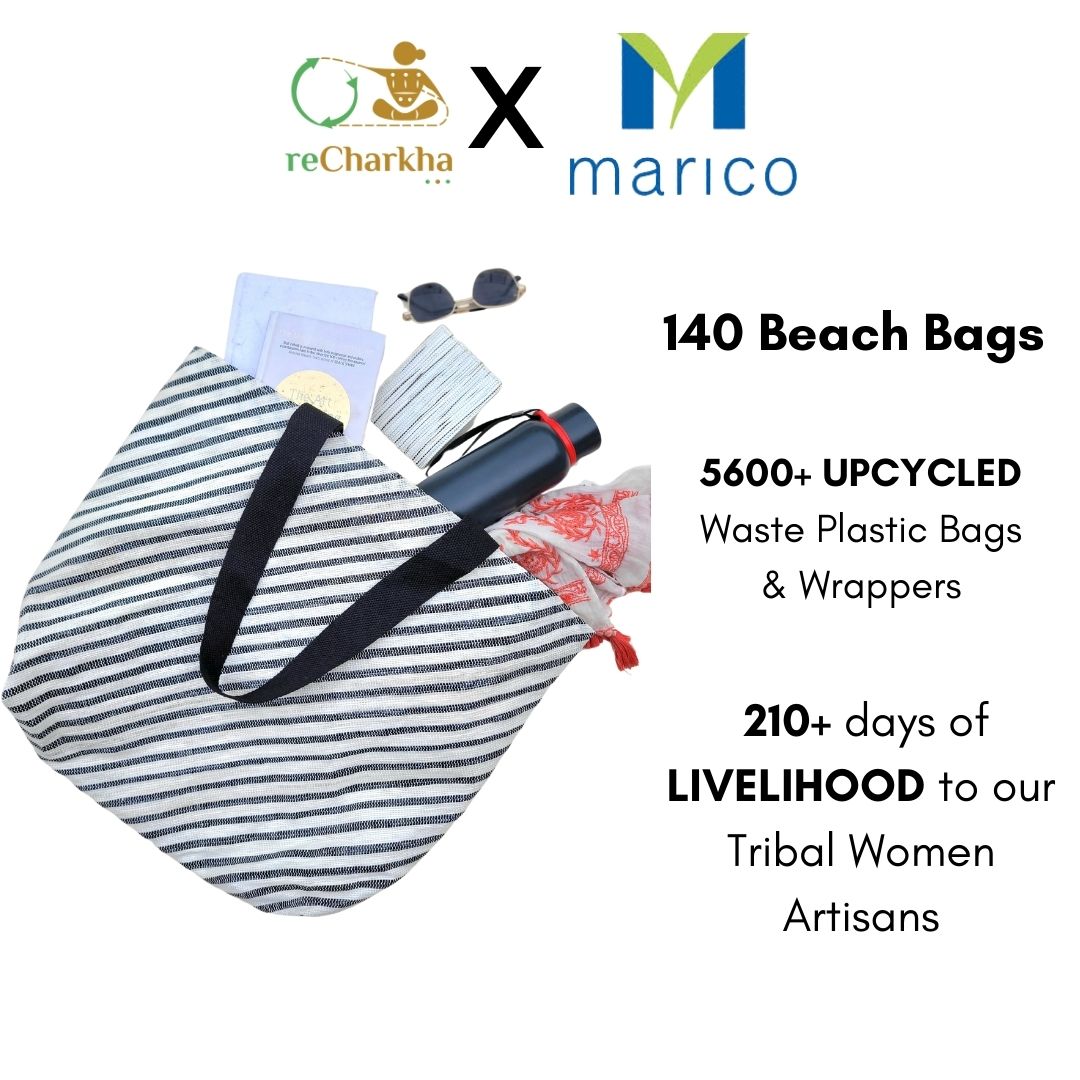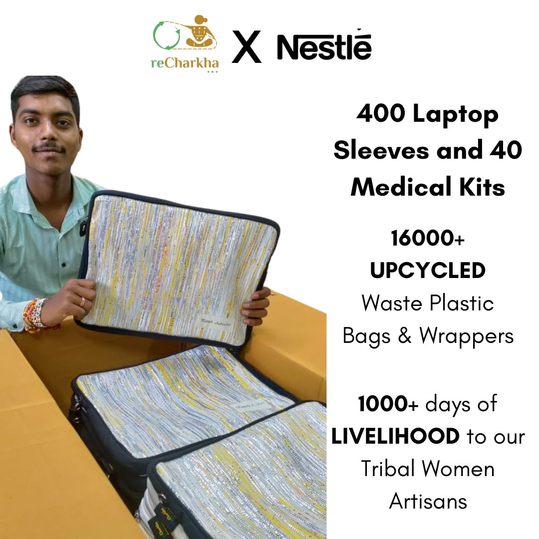Using traditional charkha and handloom, retaining original colors of plastic waste, using zero electricity and chemicals.